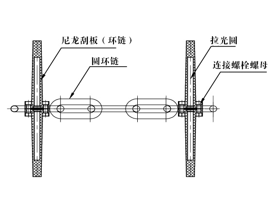 尼龍板安裝間距均每隔四節(jié)安裝一組,聚氨酯清掃刮板均每隔四節(jié)或六節(jié)尼龍刮板安裝一片