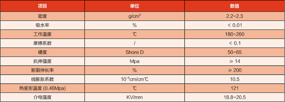 一定的耐化學(xué)腐蝕性能、介電性能及耐高溫性能,在已知固體材料中具有較低的磨擦系