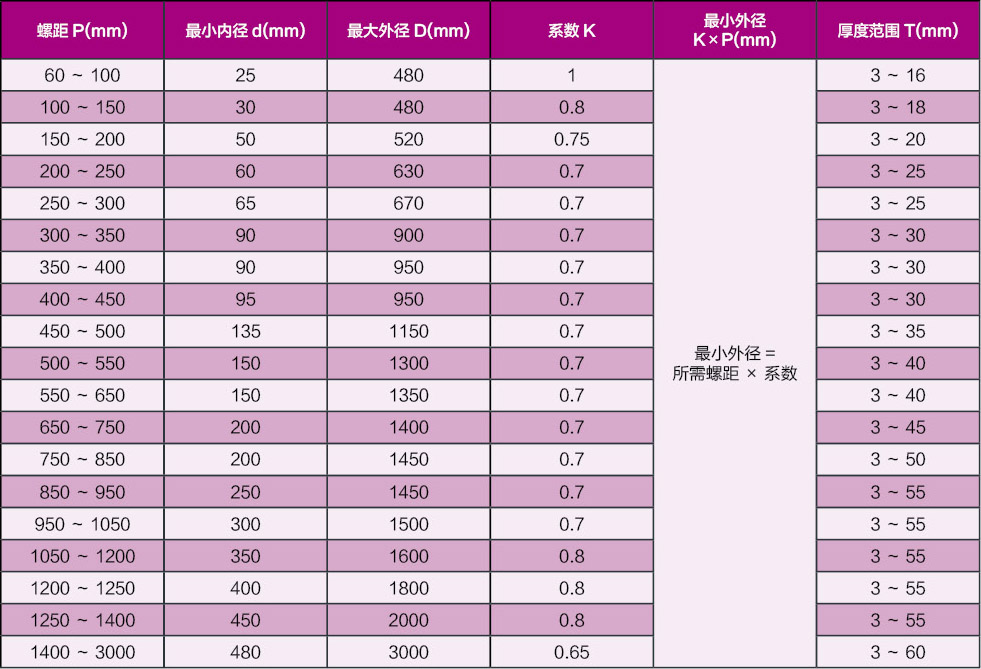 1、可成型大而厚,材質為低碳鋼、低合金鋼、耐磨鋼及不銹鋼的等徑、等螺距、變徑、變螺距、及內孔圓周和外徑圓周帶凸臺或豁口要求的多種形式的“分段等厚螺旋葉片”。