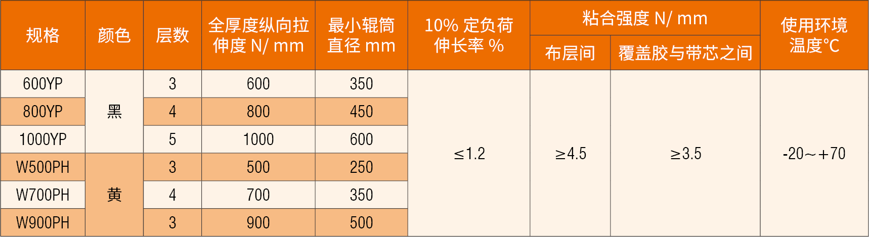 骨架材料選用低收縮、高卷曲度的合成聚酯纖維浸膠帆布,采用抗靜電橡膠配方,是糧食及食品行業(yè)應(yīng)用廣泛的橡膠提升帶。
