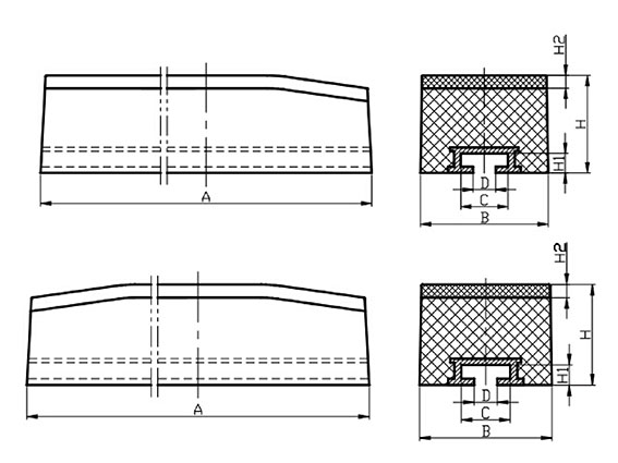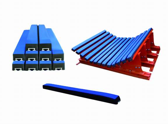 緩沖條是由橡膠、金屬型材(鋼件或鋁型材)、超高板材經(jīng)特殊方式處理,并通過熱硫化的方式粘合的組合件。其主要用于大型皮帶輸送機(jī)進(jìn)料口大落差的緩沖接料,高能吸收和低摩擦地緩解進(jìn)料端落料的沖擊力,為廣大火電廠、建材、鋼鐵、港口及礦山等行業(yè)的皮帶輸送系統(tǒng)采用。