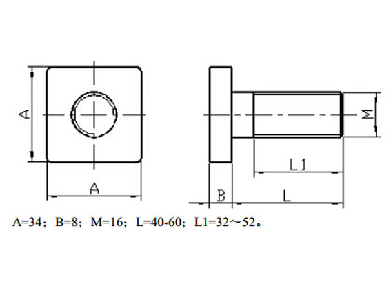 2、 方頭螺栓M16X40,M16X60為標(biāo)準(zhǔn)配置,如需加長(zhǎng)須訂制。